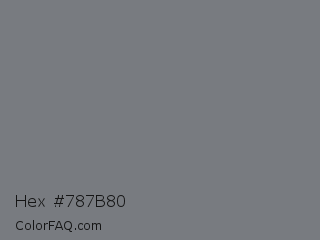 Hex #787b80 Color is a normal blue color and the nearest color is Jumbo #7c7b82. Hex code #787b80 and RGB value is rgb(120,123,128). In RGB color space, this color is composed of 47% red, 48% green, 50% blue, In CMYK color space, this color is composed of 6% cyan, 4% magenta, 0% yellow , 50% black , In HSL color space, this color has a hue angle of 218° , 3% saturation and 49% lightness.