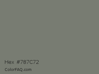 Hex #787c72 Color is a normal green color and the nearest color is Tapa #7b7874. Hex code #787c72 and RGB value is rgb(120,124,114). In RGB color space, this color is composed of 47% red, 49% green, 45% blue, In CMYK color space, this color is composed of 3% cyan, 0% magenta, 8% yellow , 51% black , In HSL color space, this color has a hue angle of 84° , 4% saturation and 47% lightness.