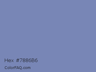 Hex #7886b6 Color is a normal blue color and the nearest color is Wild Blue Yonder #7a89b8. Hex code #7886b6 and RGB value is rgb(120,134,182). In RGB color space, this color is composed of 47% red, 53% green, 71% blue, In CMYK color space, this color is composed of 34% cyan, 26% magenta, 0% yellow , 29% black , In HSL color space, this color has a hue angle of 226° , 30% saturation and 59% lightness.