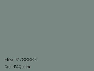 Hex #788883 Color is a normal green color and the nearest color is Blue Smoke #748881. Hex code #788883 and RGB value is rgb(120,136,131). In RGB color space, this color is composed of 47% red, 53% green, 51% blue, In CMYK color space, this color is composed of 12% cyan, 0% magenta, 4% yellow , 47% black , In HSL color space, this color has a hue angle of 161° , 6% saturation and 50% lightness.