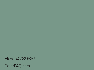 Hex #789889 Color is a normal green color and the nearest color is Oxley #779e86. Hex code #789889 and RGB value is rgb(120,152,137). In RGB color space, this color is composed of 47% red, 60% green, 54% blue, In CMYK color space, this color is composed of 21% cyan, 0% magenta, 10% yellow , 40% black , In HSL color space, this color has a hue angle of 152° , 13% saturation and 53% lightness.