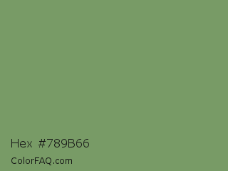 Hex #789b66 Color is a normal green color and the nearest color is Asparagus Green #7ba05b. Hex code #789b66 and RGB value is rgb(120,155,102). In RGB color space, this color is composed of 47% red, 61% green, 40% blue, In CMYK color space, this color is composed of 23% cyan, 0% magenta, 34% yellow , 39% black , In HSL color space, this color has a hue angle of 100° , 21% saturation and 50% lightness.