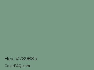 Hex #789b85 Color is a normal green color and the nearest color is Oxley #779e86. Hex code #789b85 and RGB value is rgb(120,155,133). In RGB color space, this color is composed of 47% red, 61% green, 52% blue, In CMYK color space, this color is composed of 23% cyan, 0% magenta, 14% yellow , 39% black , In HSL color space, this color has a hue angle of 142° , 15% saturation and 54% lightness.