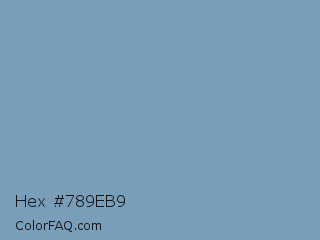 Hex #789eb9 Color is a normal blue color and the nearest color is Air Superiority Blue #72a0c1. Hex code #789eb9 and RGB value is rgb(120,158,185). In RGB color space, this color is composed of 47% red, 62% green, 73% blue, In CMYK color space, this color is composed of 35% cyan, 15% magenta, 0% yellow , 27% black , In HSL color space, this color has a hue angle of 205° , 32% saturation and 60% lightness.