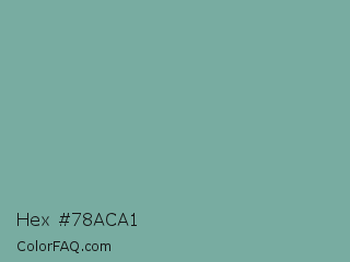 Hex #78aca1 Color is a normal cyan color and the nearest color is Acapulco #7cb0a1. Hex code #78aca1 and RGB value is rgb(120,172,161). In RGB color space, this color is composed of 47% red, 67% green, 63% blue, In CMYK color space, this color is composed of 30% cyan, 0% magenta, 6% yellow , 33% black , In HSL color space, this color has a hue angle of 167° , 24% saturation and 57% lightness.