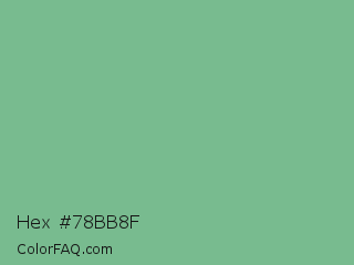 Hex #78bb8f Color is a normal green color and the nearest color is De York #7ac488. Hex code #78bb8f and RGB value is rgb(120,187,143). In RGB color space, this color is composed of 47% red, 73% green, 56% blue, In CMYK color space, this color is composed of 36% cyan, 0% magenta, 24% yellow , 27% black , In HSL color space, this color has a hue angle of 141° , 33% saturation and 60% lightness.