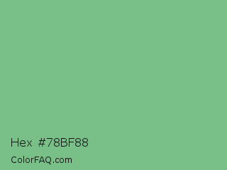 Hex #78bf88 Color is a light green color and the nearest color is De York #7ac488. Hex code #78bf88 and RGB value is rgb(120,191,136). In RGB color space, this color is composed of 47% red, 75% green, 53% blue, In CMYK color space, this color is composed of 37% cyan, 0% magenta, 29% yellow , 25% black , In HSL color space, this color has a hue angle of 134° , 36% saturation and 61% lightness.