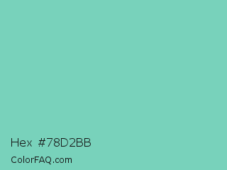 Hex #78d2bb Color is a light cyan color and the nearest color is Bermuda #7dd8c6. Hex code #78d2bb and RGB value is rgb(120,210,187). In RGB color space, this color is composed of 47% red, 82% green, 73% blue, In CMYK color space, this color is composed of 43% cyan, 0% magenta, 11% yellow , 18% black , In HSL color space, this color has a hue angle of 165° , 50% saturation and 65% lightness.