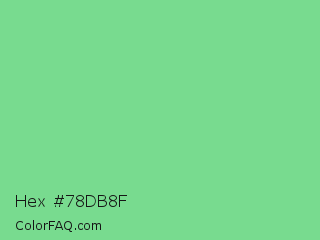 Hex #78db8f Color is a light green color and the nearest color is Pastel Green #77dd77. Hex code #78db8f and RGB value is rgb(120,219,143). In RGB color space, this color is composed of 47% red, 86% green, 56% blue, In CMYK color space, this color is composed of 45% cyan, 0% magenta, 35% yellow , 14% black , In HSL color space, this color has a hue angle of 134° , 58% saturation and 66% lightness.