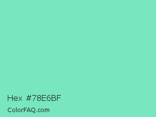 Hex #78e6bf Color is a light green color and the nearest color is Bermuda #7dd8c6. Hex code #78e6bf and RGB value is rgb(120,230,191). In RGB color space, this color is composed of 47% red, 90% green, 75% blue, In CMYK color space, this color is composed of 48% cyan, 0% magenta, 17% yellow , 10% black , In HSL color space, this color has a hue angle of 159° , 69% saturation and 69% lightness.