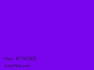 Hex #7905ee Color is a normal violet color and the nearest color is Violet Color Wheel #7f00ff. Hex code #7905ee and RGB value is rgb(121,5,238). In RGB color space, this color is composed of 47% red, 2% green, 93% blue, In CMYK color space, this color is composed of 49% cyan, 98% magenta, 0% yellow , 7% black , In HSL color space, this color has a hue angle of 270° , 96% saturation and 48% lightness.