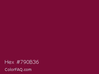 Hex #790b36 Color is a dark rose color and the nearest color is Siren #7a013a. Hex code #790b36 and RGB value is rgb(121,11,54). In RGB color space, this color is composed of 47% red, 4% green, 21% blue, In CMYK color space, this color is composed of 0% cyan, 91% magenta, 55% yellow , 53% black , In HSL color space, this color has a hue angle of 337° , 83% saturation and 26% lightness.