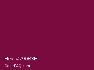Hex #790b3e Color is a dark rose color and the nearest color is Siren #7a013a. Hex code #790b3e and RGB value is rgb(121,11,62). In RGB color space, this color is composed of 47% red, 4% green, 24% blue, In CMYK color space, this color is composed of 0% cyan, 91% magenta, 49% yellow , 53% black , In HSL color space, this color has a hue angle of 332° , 83% saturation and 26% lightness.