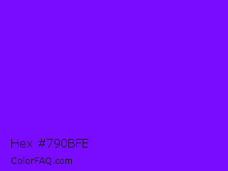 Hex #790bfe Color is a normal violet color and the nearest color is Violet Color Wheel #7f00ff. Hex code #790bfe and RGB value is rgb(121,11,254). In RGB color space, this color is composed of 47% red, 4% green, 100% blue, In CMYK color space, this color is composed of 52% cyan, 96% magenta, 0% yellow , 0% black , In HSL color space, this color has a hue angle of 267° , 99% saturation and 52% lightness.