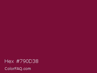 Hex #790d38 Color is a dark rose color and the nearest color is Siren #7a013a. Hex code #790d38 and RGB value is rgb(121,13,56). In RGB color space, this color is composed of 47% red, 5% green, 22% blue, In CMYK color space, this color is composed of 0% cyan, 89% magenta, 54% yellow , 53% black , In HSL color space, this color has a hue angle of 336° , 81% saturation and 26% lightness.