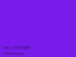 Hex #791beb Color is a normal violet color and the nearest color is Blue Violet #8a2be2. Hex code #791beb and RGB value is rgb(121,27,235). In RGB color space, this color is composed of 47% red, 11% green, 92% blue, In CMYK color space, this color is composed of 49% cyan, 89% magenta, 0% yellow , 8% black , In HSL color space, this color has a hue angle of 267° , 84% saturation and 51% lightness.