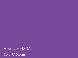 Hex #79489a Color is a normal purple color and the nearest color is Dark Lavender #734f96. Hex code #79489a and RGB value is rgb(121,72,154). In RGB color space, this color is composed of 47% red, 28% green, 60% blue, In CMYK color space, this color is composed of 21% cyan, 53% magenta, 0% yellow , 40% black , In HSL color space, this color has a hue angle of 276° , 36% saturation and 44% lightness.