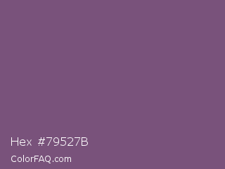Hex #79527b Color is a normal magenta color and the nearest color is Falcon #7f626d. Hex code #79527b and RGB value is rgb(121,82,123). In RGB color space, this color is composed of 47% red, 32% green, 48% blue, In CMYK color space, this color is composed of 2% cyan, 33% magenta, 0% yellow , 52% black , In HSL color space, this color has a hue angle of 297° , 20% saturation and 40% lightness.