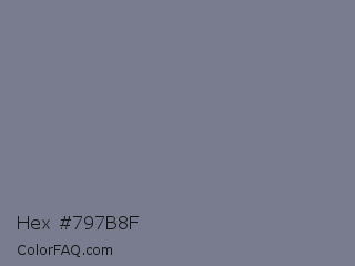 Hex #797b8f Color is a normal blue color and the nearest color is Waterloo #7b7c94. Hex code #797b8f and RGB value is rgb(121,123,143). In RGB color space, this color is composed of 47% red, 48% green, 56% blue, In CMYK color space, this color is composed of 15% cyan, 14% magenta, 0% yellow , 44% black , In HSL color space, this color has a hue angle of 235° , 9% saturation and 52% lightness.