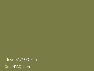Hex #797c45 Color is a normal yellow color and the nearest color is Gold Fusion #85754e. Hex code #797c45 and RGB value is rgb(121,124,69). In RGB color space, this color is composed of 47% red, 49% green, 27% blue, In CMYK color space, this color is composed of 2% cyan, 0% magenta, 44% yellow , 51% black , In HSL color space, this color has a hue angle of 63° , 28% saturation and 38% lightness.