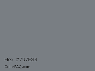 Hex #797e83 Color is a normal blue color and the nearest color is Jumbo #7c7b82. Hex code #797e83 and RGB value is rgb(121,126,131). In RGB color space, this color is composed of 47% red, 49% green, 51% blue, In CMYK color space, this color is composed of 8% cyan, 4% magenta, 0% yellow , 49% black , In HSL color space, this color has a hue angle of 210° , 4% saturation and 49% lightness.