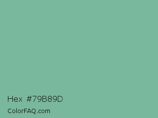 Hex #79b89d Color is a normal green color and the nearest color is Acapulco #7cb0a1. Hex code #79b89d and RGB value is rgb(121,184,157). In RGB color space, this color is composed of 47% red, 72% green, 62% blue, In CMYK color space, this color is composed of 34% cyan, 0% magenta, 15% yellow , 28% black , In HSL color space, this color has a hue angle of 154° , 31% saturation and 60% lightness.