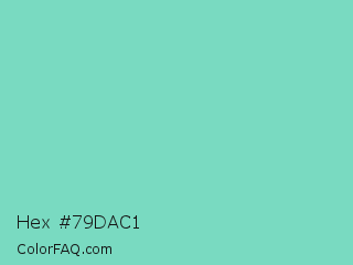 Hex #79dac1 Color is a light cyan color and the nearest color is Bermuda #7dd8c6. Hex code #79dac1 and RGB value is rgb(121,218,193). In RGB color space, this color is composed of 47% red, 85% green, 76% blue, In CMYK color space, this color is composed of 44% cyan, 0% magenta, 11% yellow , 15% black , In HSL color space, this color has a hue angle of 165° , 57% saturation and 66% lightness.