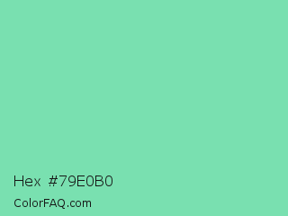 Hex #79e0b0 Color is a light green color and the nearest color is Medium Aquamarine #66ddaa. Hex code #79e0b0 and RGB value is rgb(121,224,176). In RGB color space, this color is composed of 47% red, 88% green, 69% blue, In CMYK color space, this color is composed of 46% cyan, 0% magenta, 21% yellow , 12% black , In HSL color space, this color has a hue angle of 152° , 62% saturation and 68% lightness.