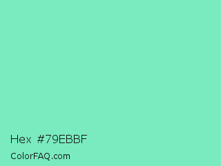 Hex #79ebbf Color is a light green color and the nearest color is Bermuda #7dd8c6. Hex code #79ebbf and RGB value is rgb(121,235,191). In RGB color space, this color is composed of 47% red, 92% green, 75% blue, In CMYK color space, this color is composed of 49% cyan, 0% magenta, 19% yellow , 8% black , In HSL color space, this color has a hue angle of 157° , 74% saturation and 70% lightness.