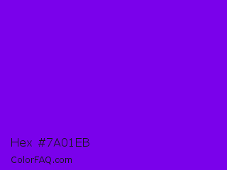 Hex #7a01eb Color is a normal purple color and the nearest color is Violet Color Wheel #7f00ff. Hex code #7a01eb and RGB value is rgb(122,1,235). In RGB color space, this color is composed of 48% red, 0% green, 92% blue, In CMYK color space, this color is composed of 48% cyan, 100% magenta, 0% yellow , 8% black , In HSL color space, this color has a hue angle of 271° , 99% saturation and 46% lightness.