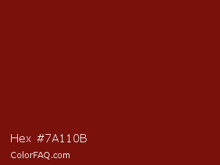 Hex #7a110b Color is a dark red color and the nearest color is Dark Burgundy #770f05. Hex code #7a110b and RGB value is rgb(122,17,11). In RGB color space, this color is composed of 48% red, 7% green, 4% blue, In CMYK color space, this color is composed of 0% cyan, 86% magenta, 91% yellow , 52% black , In HSL color space, this color has a hue angle of 3° , 83% saturation and 26% lightness.