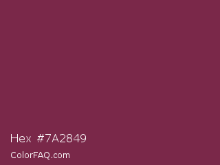 Hex #7a2849 Color is a normal rose color and the nearest color is Pansy Purple #78184a. Hex code #7a2849 and RGB value is rgb(122,40,73). In RGB color space, this color is composed of 48% red, 16% green, 29% blue, In CMYK color space, this color is composed of 0% cyan, 67% magenta, 40% yellow , 52% black , In HSL color space, this color has a hue angle of 336° , 51% saturation and 32% lightness.