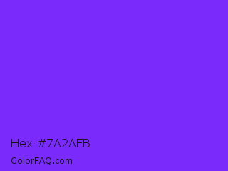 Hex #7a2afb Color is a normal violet color and the nearest color is Blue Violet #8a2be2. Hex code #7a2afb and RGB value is rgb(122,42,251). In RGB color space, this color is composed of 48% red, 16% green, 98% blue, In CMYK color space, this color is composed of 51% cyan, 83% magenta, 0% yellow , 2% black , In HSL color space, this color has a hue angle of 263° , 96% saturation and 57% lightness.