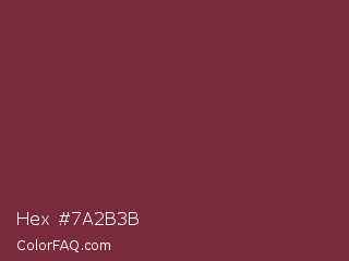 Hex #7a2b3b Color is a normal red color and the nearest color is Wine #722f37. Hex code #7a2b3b and RGB value is rgb(122,43,59). In RGB color space, this color is composed of 48% red, 17% green, 23% blue, In CMYK color space, this color is composed of 0% cyan, 65% magenta, 52% yellow , 52% black , In HSL color space, this color has a hue angle of 348° , 48% saturation and 32% lightness.