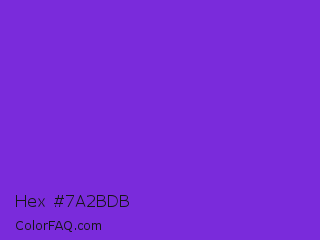 Hex #7a2bdb Color is a normal violet color and the nearest color is Blue Violet #8a2be2. Hex code #7a2bdb and RGB value is rgb(122,43,219). In RGB color space, this color is composed of 48% red, 17% green, 86% blue, In CMYK color space, this color is composed of 44% cyan, 80% magenta, 0% yellow , 14% black , In HSL color space, this color has a hue angle of 267° , 71% saturation and 51% lightness.