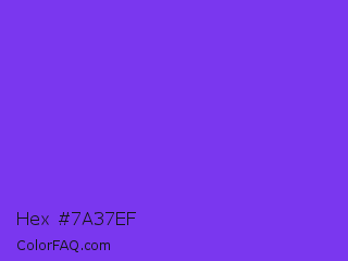 Hex #7a37ef Color is a normal violet color and the nearest color is Blue Violet #8a2be2. Hex code #7a37ef and RGB value is rgb(122,55,239). In RGB color space, this color is composed of 48% red, 22% green, 94% blue, In CMYK color space, this color is composed of 49% cyan, 77% magenta, 0% yellow , 6% black , In HSL color space, this color has a hue angle of 262° , 85% saturation and 58% lightness.