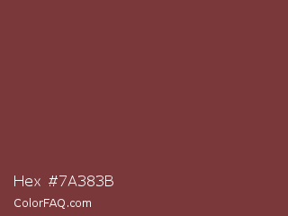 Hex #7a383b Color is a normal red color and the nearest color is Medium Tuscan Red #79443b. Hex code #7a383b and RGB value is rgb(122,56,59). In RGB color space, this color is composed of 48% red, 22% green, 23% blue, In CMYK color space, this color is composed of 0% cyan, 54% magenta, 52% yellow , 52% black , In HSL color space, this color has a hue angle of 357° , 37% saturation and 35% lightness.