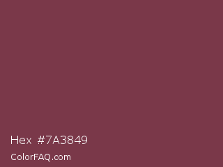 Hex #7a3849 Color is a normal red color and the nearest color is Catawba #703642. Hex code #7a3849 and RGB value is rgb(122,56,73). In RGB color space, this color is composed of 48% red, 22% green, 29% blue, In CMYK color space, this color is composed of 0% cyan, 54% magenta, 40% yellow , 52% black , In HSL color space, this color has a hue angle of 345° , 37% saturation and 35% lightness.