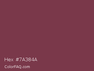 Hex #7a384a Color is a normal rose color and the nearest color is Catawba #703642. Hex code #7a384a and RGB value is rgb(122,56,74). In RGB color space, this color is composed of 48% red, 22% green, 29% blue, In CMYK color space, this color is composed of 0% cyan, 54% magenta, 39% yellow , 52% black , In HSL color space, this color has a hue angle of 344° , 37% saturation and 35% lightness.