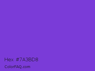 Hex #7a3bd8 Color is a normal violet color and the nearest color is Blue Violet #8a2be2. Hex code #7a3bd8 and RGB value is rgb(122,59,216). In RGB color space, this color is composed of 48% red, 23% green, 85% blue, In CMYK color space, this color is composed of 44% cyan, 73% magenta, 0% yellow , 15% black , In HSL color space, this color has a hue angle of 264° , 67% saturation and 54% lightness.