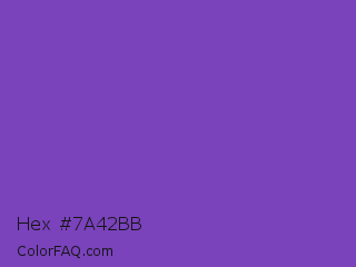 Hex #7a42bb Color is a normal violet color and the nearest color is Studio #714ab2. Hex code #7a42bb and RGB value is rgb(122,66,187). In RGB color space, this color is composed of 48% red, 26% green, 73% blue, In CMYK color space, this color is composed of 35% cyan, 65% magenta, 0% yellow , 27% black , In HSL color space, this color has a hue angle of 268° , 48% saturation and 50% lightness.