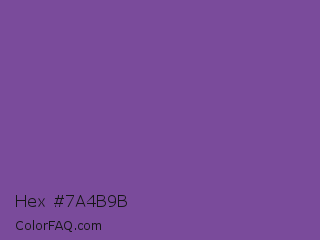Hex #7a4b9b Color is a normal purple color and the nearest color is Dark Lavender #734f96. Hex code #7a4b9b and RGB value is rgb(122,75,155). In RGB color space, this color is composed of 48% red, 29% green, 61% blue, In CMYK color space, this color is composed of 21% cyan, 52% magenta, 0% yellow , 39% black , In HSL color space, this color has a hue angle of 275° , 35% saturation and 45% lightness.