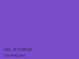 Hex #7a4bcb Color is a normal violet color and the nearest color is Fuchsia Blue #7a58c1. Hex code #7a4bcb and RGB value is rgb(122,75,203). In RGB color space, this color is composed of 48% red, 29% green, 80% blue, In CMYK color space, this color is composed of 40% cyan, 63% magenta, 0% yellow , 20% black , In HSL color space, this color has a hue angle of 262° , 55% saturation and 55% lightness.