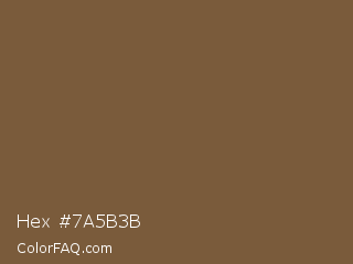 Hex #7a5b3b Color is a normal orange color and the nearest color is Coyote Brown #81613c. Hex code #7a5b3b and RGB value is rgb(122,91,59). In RGB color space, this color is composed of 48% red, 36% green, 23% blue, In CMYK color space, this color is composed of 0% cyan, 25% magenta, 52% yellow , 52% black , In HSL color space, this color has a hue angle of 30° , 35% saturation and 35% lightness.