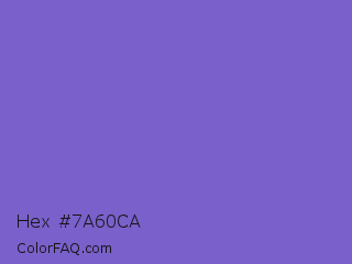 Hex #7a60ca Color is a normal indigo color and the nearest color is Blue Marguerite #7666c6. Hex code #7a60ca and RGB value is rgb(122,96,202). In RGB color space, this color is composed of 48% red, 38% green, 79% blue, In CMYK color space, this color is composed of 40% cyan, 52% magenta, 0% yellow , 21% black , In HSL color space, this color has a hue angle of 255° , 50% saturation and 58% lightness.