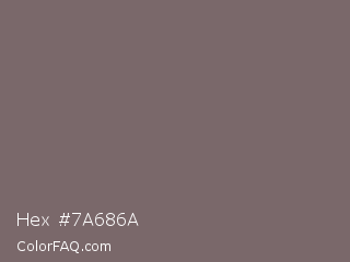 Hex #7a686a Color is a normal red color and the nearest color is Falcon #7f626d. Hex code #7a686a and RGB value is rgb(122,104,106). In RGB color space, this color is composed of 48% red, 41% green, 42% blue, In CMYK color space, this color is composed of 0% cyan, 15% magenta, 13% yellow , 52% black , In HSL color space, this color has a hue angle of 353° , 8% saturation and 44% lightness.