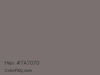 Hex #7a7070 Color is a normal red color and the nearest color is Spicy Pink #816e71. Hex code #7a7070 and RGB value is rgb(122,112,112). In RGB color space, this color is composed of 48% red, 44% green, 44% blue, In CMYK color space, this color is composed of 0% cyan, 8% magenta, 8% yellow , 52% black , In HSL color space, this color has a hue angle of 0° , 4% saturation and 46% lightness.
