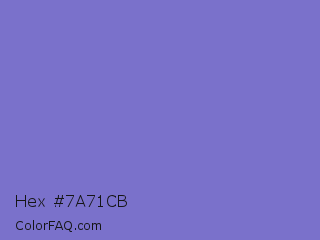 Hex #7a71cb Color is a light indigo color and the nearest color is Moody Blue #7f76d3. Hex code #7a71cb and RGB value is rgb(122,113,203). In RGB color space, this color is composed of 48% red, 44% green, 80% blue, In CMYK color space, this color is composed of 40% cyan, 44% magenta, 0% yellow , 20% black , In HSL color space, this color has a hue angle of 246° , 46% saturation and 62% lightness.