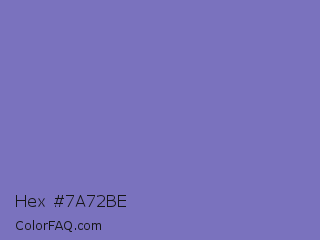 Hex #7a72be Color is a normal indigo color and the nearest color is Toolbox #746cc0. Hex code #7a72be and RGB value is rgb(122,114,190). In RGB color space, this color is composed of 48% red, 45% green, 75% blue, In CMYK color space, this color is composed of 36% cyan, 40% magenta, 0% yellow , 25% black , In HSL color space, this color has a hue angle of 246° , 37% saturation and 60% lightness.