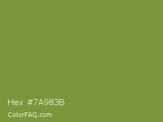 Hex #7a983b Color is a normal lime color and the nearest color is Palm Leaf #6f9940. Hex code #7a983b and RGB value is rgb(122,152,59). In RGB color space, this color is composed of 48% red, 60% green, 23% blue, In CMYK color space, this color is composed of 20% cyan, 0% magenta, 61% yellow , 40% black , In HSL color space, this color has a hue angle of 79° , 44% saturation and 41% lightness.
